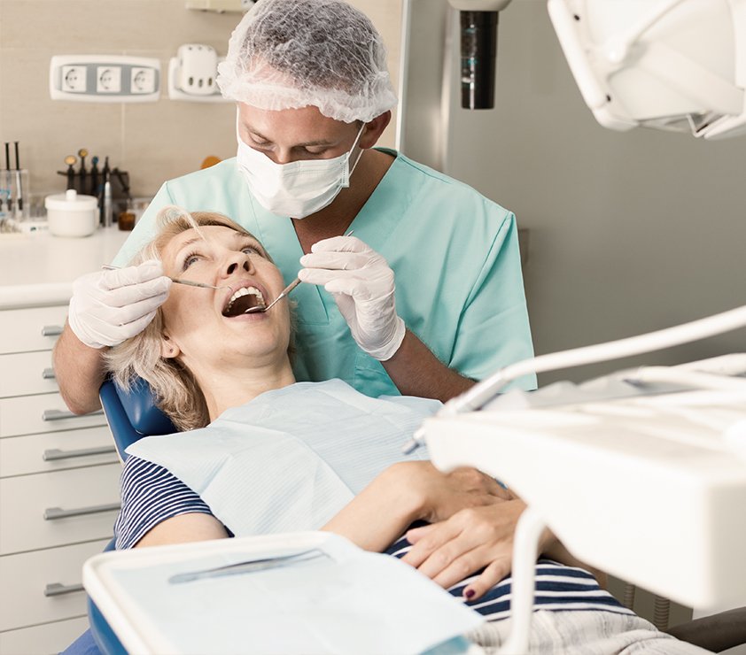 Dr. Mantena evaluates your teeth, gums, bite, and any restorations to check for signs of decay, gum disease, or wear.